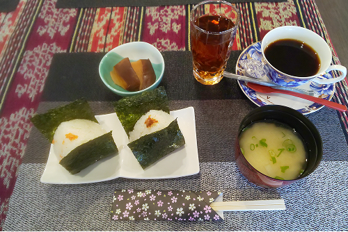 自慢の特製おにぎりは、丁寧に育てた菌床椎茸を使用し、風味豊かなつくだ煮をたっぷり詰めた一品。地元の皆さまをはじめ、多くのお客様にご好評いただいております。