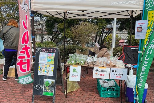 椎茸を使った食品の販売や、輪投げ、スーパーボールすくいなど、参加者みんなで楽しめる出店を通じて、地域の方々と触れ合いながら、楽しい時間を過ごしています。
